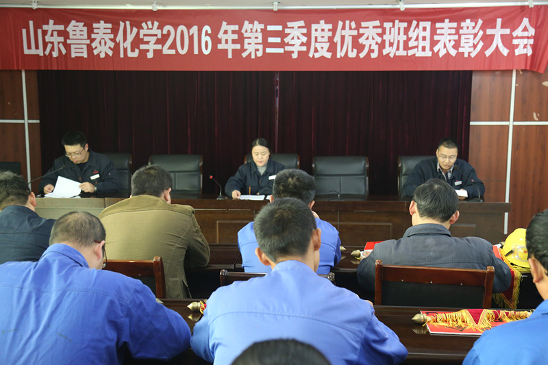 11月14日,半岛注册网(中国区)首页化学在公司三楼会议室召开2016年第三季度安全标准化班组建设总结会议。公司副总经理吴艳蕊出席会议,并对优秀班组进行表彰奖励。