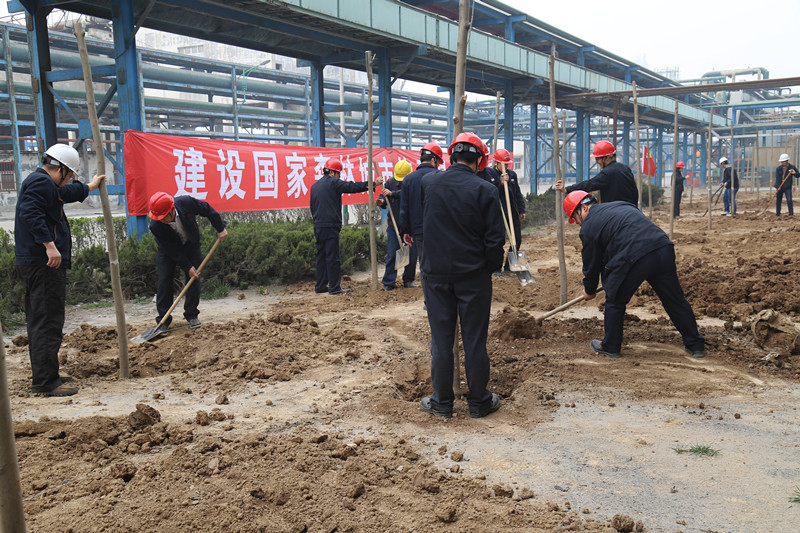为积极响应全市"建设国家森林城市"工作号召,3月12日上午,半岛注册网(中国区)首页化学党委、团委组织50余名志愿者,在厂区开展2017年春季义务植树活动。
