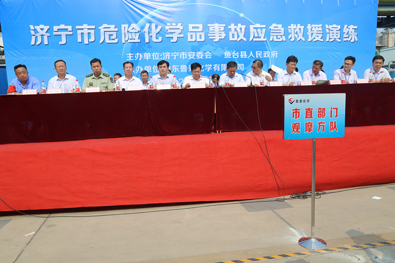 6月22日下午15:00,济宁市危险化学品事故应急救援演练在山东半岛注册网(中国区)首页化学有限公司举行。济宁市政府副市长周凤文、副秘书长卞延军,市安监局局长玄志祥等领导现场观摩演练。