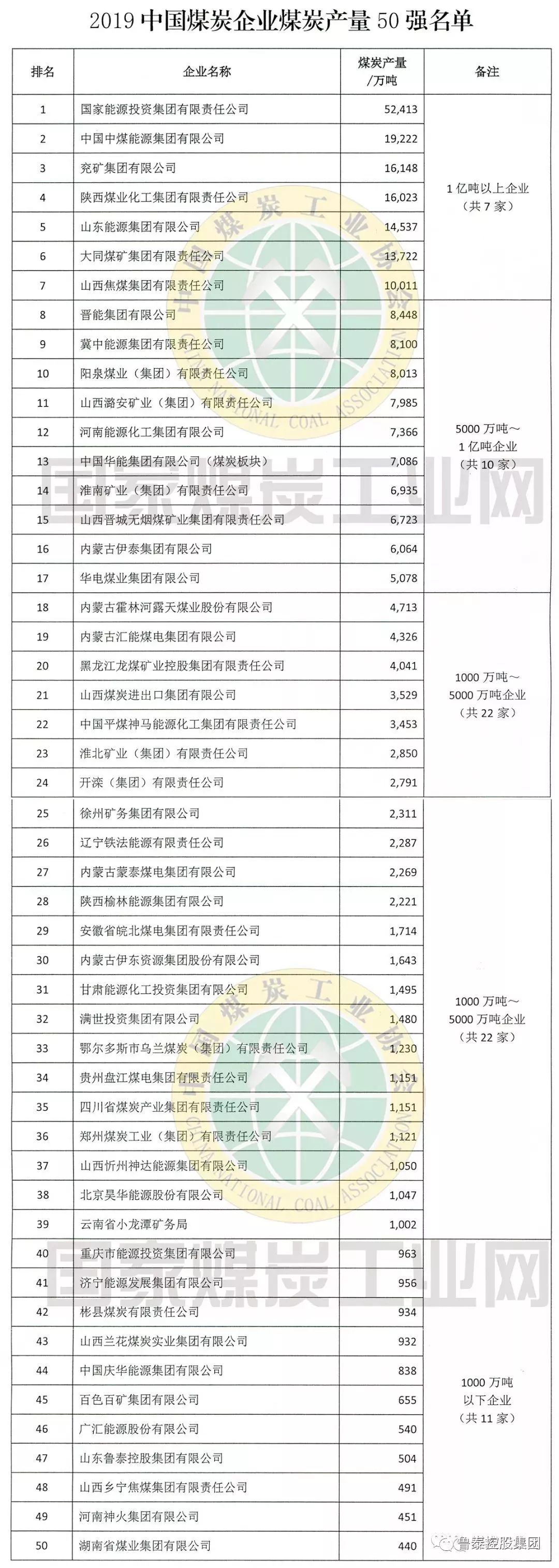 日前,中国煤炭工业协会发布了2019中国煤炭产量50强榜单,半岛注册网(中国区)首页控股集团以年产量504万吨位居第47位。这是集团公司继上榜2018中国煤炭产量50强榜单后,排名上升三位,再次上榜中国煤炭产量50强。