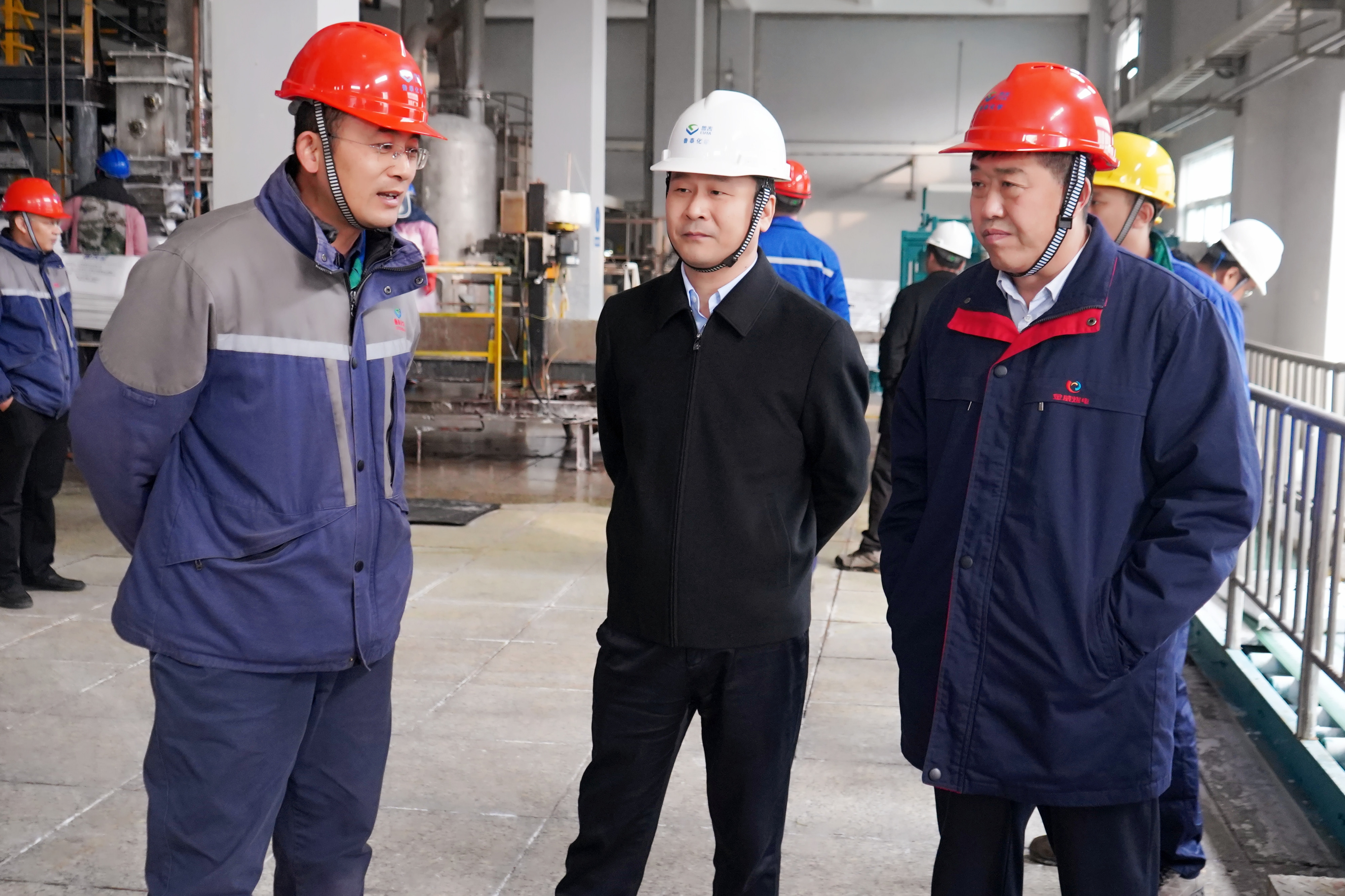 魏忠勋一行先后来到半岛注册网(中国区)首页化工浓片碱、高纯氢项目,半岛注册网(中国区)首页热电#3、#4机组非煤化清洁燃料改造现场调研,听取项目建设进展、安全保障等情况介绍,与企业负责人、一线职工亲切交流。